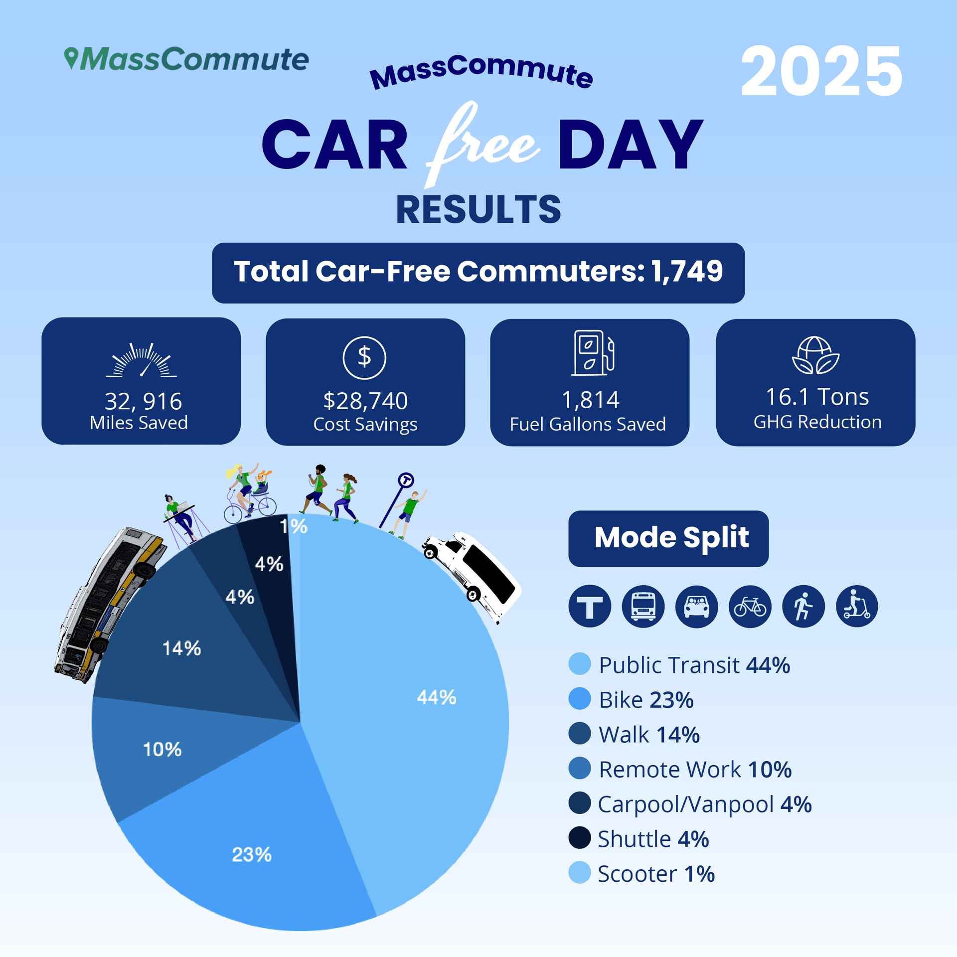 World Car-Free Day 2023 was a huge success! Organized in a variety of ways around the globe, every event shared the unifying goal of reducing the number of cars on the road. The Watertown TMA participated in MassCommute 's 2023 Car-Free Day, the Commonwealth’s Coalition of 15 TMAs to promote and celebrate Car-Free Day in Massachusetts. Commuters who participated helped to make a positive impact on the environment and contributed to a greener Bay State!